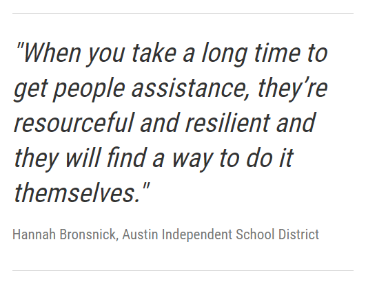 That’s been the experience of Hannah Bronsnick, a parent support specialist with the Austin Independent School District who helps families apply for rent assistance. While the RENT 2.0 program does not require Social Security numbers, Bronsnick said at least one family she helped received an automated message asking for one. She said they called her, confused and stressed.