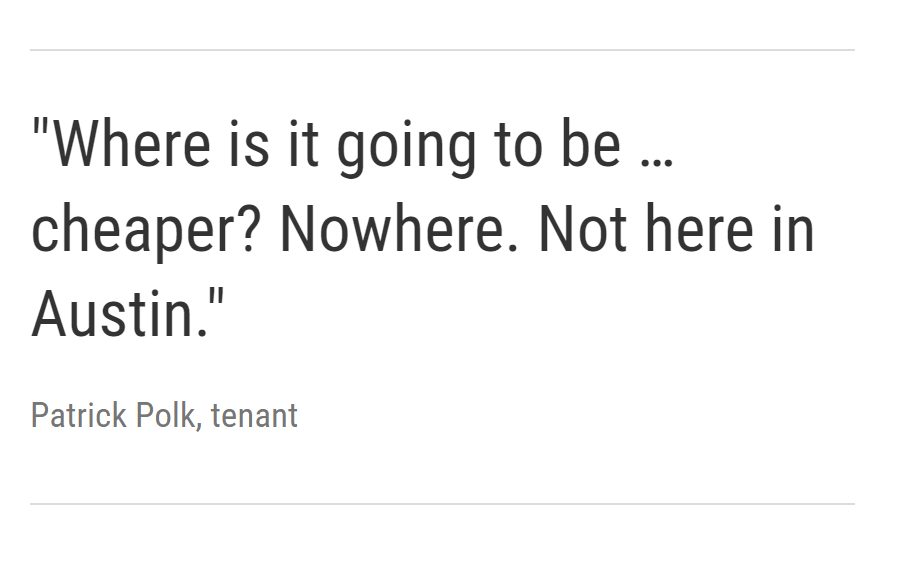 “Where is it going to be … cheaper? Nowhere. Not here in Austin,” he said.